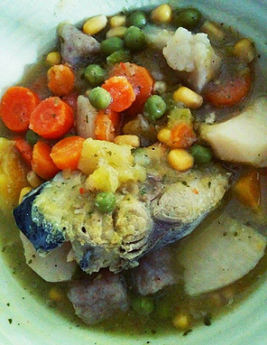An example of a heart healthy meal is as follows: Fish Soup. It contains the following: