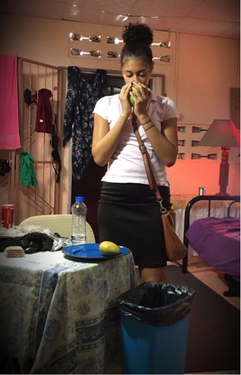 When asked what the mango signifies to Maria, actress Renee King says, “In Venezuela, they starve, they have no food, they have to rely on what grows to sustain them sometimes. The mango is a pleasant reminder that home is a smell away. Home is near and she is not alone in the empty room.”