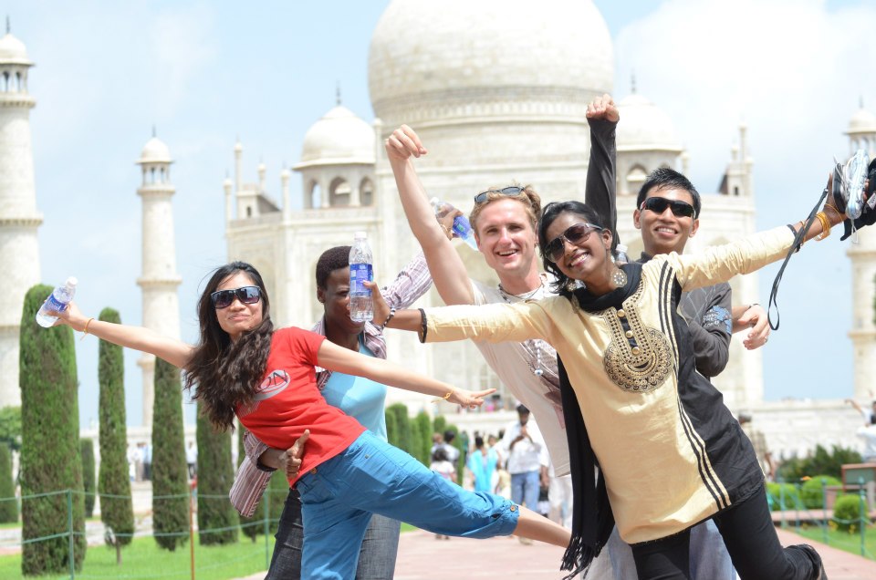 In front of the Taj Mahal, Agra, India with classmates, 2012.