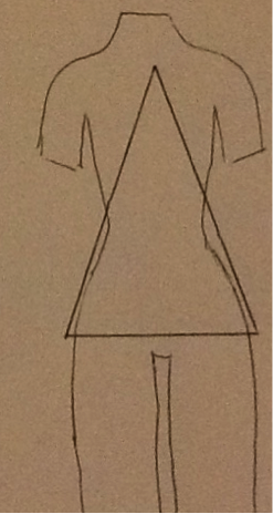 The wedge: broad shoulder and full upper body, the waist is flat with hips narrower than the bust and shoulders;
