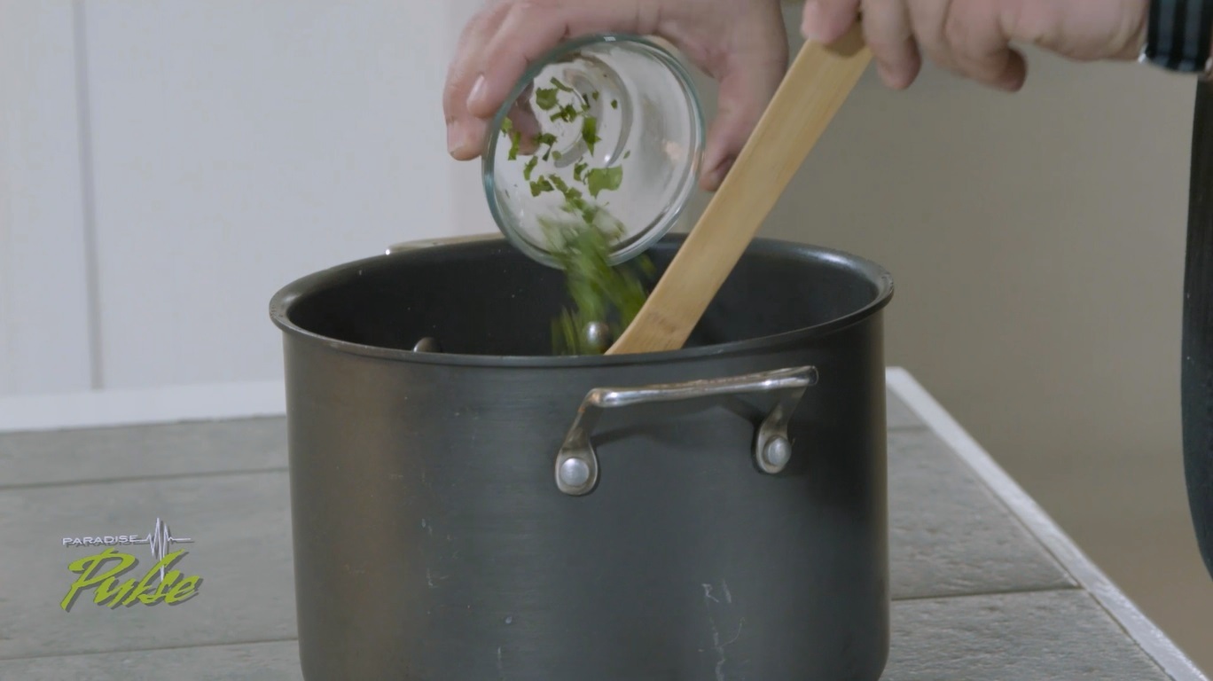 - Add chopped fresh shadon beni and a sprinkle of lime juice before you serve.